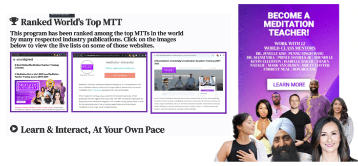 Meditation University is an established leader in the field of meditation instructor training with its comprehensive and accessible online programs. Here’s what sets MU’s meditation and mindfulness teacher training apart: